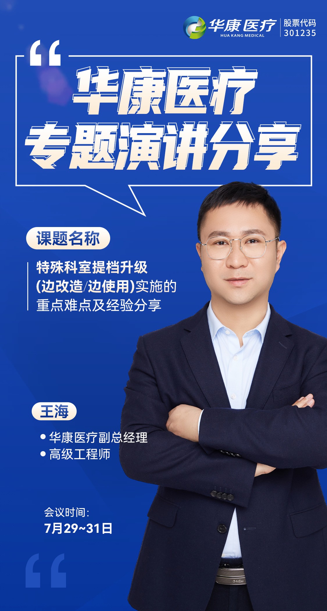 華康醫療是以醫療凈化為主業的創業板上市公司(股票代碼:301235),致力于解決醫院感染防控問題,為醫療機構提供醫療凈化系統設計,實施和運維一體化解決方案。作為大會支持單位,華康醫療將全程參與“智慧·體驗·賦能”建設智慧型醫療大健康產業新格局論壇,屆時華康醫療副總經理王海將為大家帶來《特殊科室提檔升級(邊改造、邊使用)實施的重點難點及經驗分享》的專題演講,共同探討現代醫療凈化領域的新技術、新方案。
